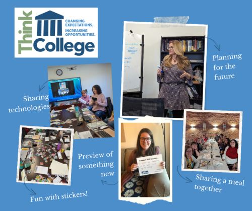 While some of our team members have worked together for over a decade, we had some newer team members attend who had never met in person. For instance, this was the first in-person meeting for the staff of the US Department of Education grant we received last October: the Think College Inclusive Higher Education Network.