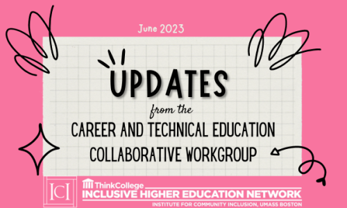If you are interested in learning more about inclusive postsecondary education programs that focus on CTE, or if you currently have a program and would like to look at ways to incorporate CTE, reach out to Dr. W. Drew Andrews (drew.andrews@ucf.edu), Think College Inclusive Higher Education Network – CTE Collaborative Workgroup lead.