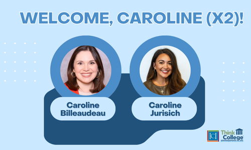 We are thrilled to welcome two new members to the Think College team - who just happen to share the same name! Caroline Billeaudeau and Caroline Jurisich have both joined our team in the last month, and we are so excited about all they will bring to our work.